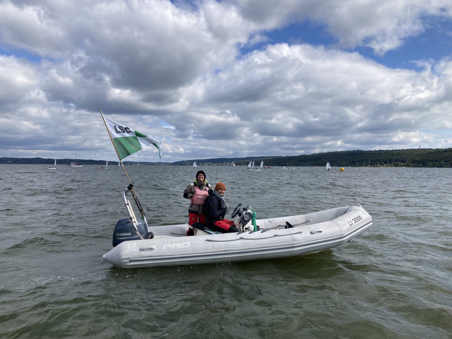 Das Wetter war dann am Samstag noch schlechter als befürchtet. Es hat geschüttet, es hatte keine 7 Grad und frischen Wind. Trotzdem haben sich die 6 Lindauer Optisegler tapfer geschlagen! Von 52 gemeldeten, traten nur 29 Segler an. Es wurden 3 Wettfahrten durchgeführt, die Regattacrew wurde durch den drehenden Wind warm gehalten.