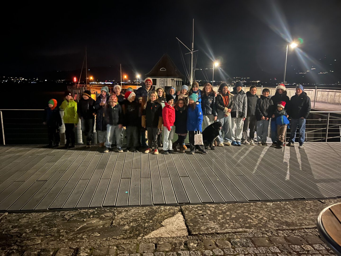 Die dritte und letzte Aufgabe führte auch wieder zu viel Gelächter. Weihnachtslieder mussten erraten werden. 1 Kind bekam die Musik per Kopfhörer auf die Ohren und musste laut mitsingen. Schwer wurde es, wenn das Kind das Lied nicht kannte. Bei den einfacheren wurde durch die Gruppe sofort eingestimmt.